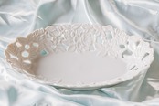 などすべてに細心の注意をはらい、圧力鋳込み製法により成形し、1300度の高温で焼き上げる繊細で華麗な透かし磁器は、世界中の他の陶産地では見られない特別な逸品です。